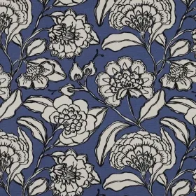 Cotton Canvas Fabric with Large Florals on Blue