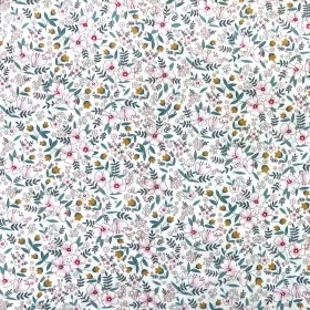 Cotton Poplin Fabric with Delicate Small Floral on White