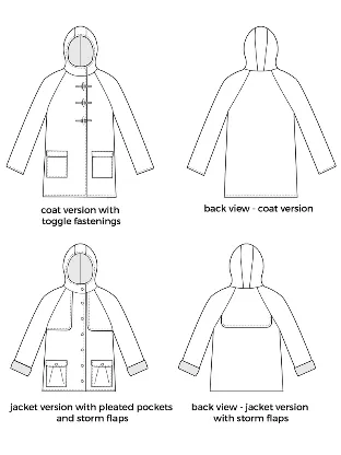 Choose from hip or long lengths, snaps or toggle fastenings with optional zip, two pocket styles and optional storm flaps. Whether on a weekend walk, at a festival or doing the school run, you can wear your DIY outerwear with pride!