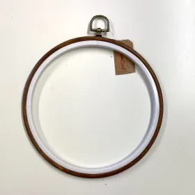 A plastic hoop that can be used for embroidery and needlework and to display your finished piece.