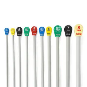 The light single-pointed knitted needles in aluminium in a variety of lengths and gauges are the ideal needles for every knitter. The non-porous, wear-resistant shaft allows the stitches to glide effortlessly over the needles. A further feature is the finely rounded point, which ensures that stitches are picked up without splitting the yarn.