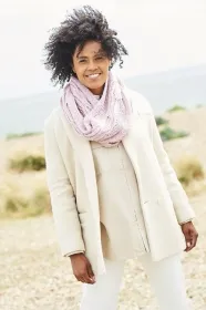 Luxury meets versitiltiy with this perfect accessory set. The pattern includes a chevron scarf, infinity cowl and matching Lace beret and mittens. Softie has such lovely stitch definition which is clear to see in each of these elegant designs.