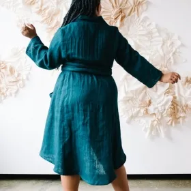 A fantastic addition to any capsule wardrobe. The Lichen Duster by Sew Liberated is a versatile lightweight coat that can also double up as a wrap dress or robe. The shawl collar and princess seams add a touch of finesse to this garment. The skirt section is made using 4 skirt gores - which is a triangular or tapered segment of fabric (narrow at the top and wider at the base).