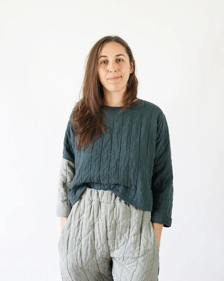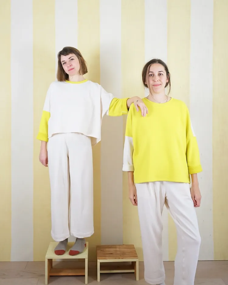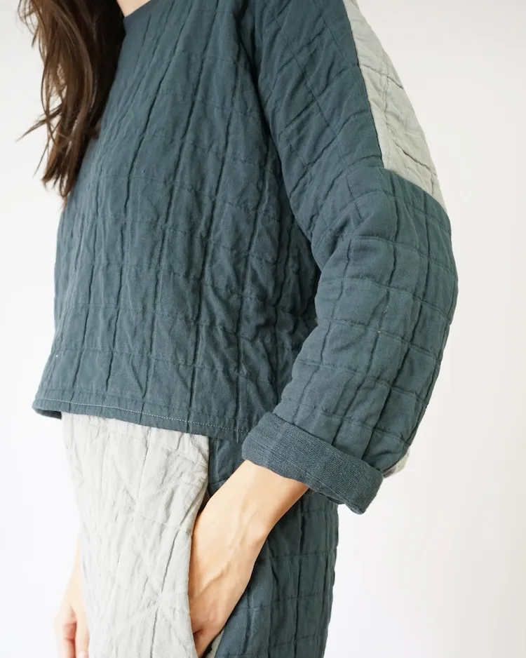 The All Around Crew is designed with comfort in mind and includes two views. View A is cropped and hits at the natural waistline. View B is tunic length and hits below the hips. Both views have a wide, relaxed fit with dropped shoulders and a gently curved back hemline. The boxy style sleeves are meant to be worn cuffed for a casual look. If you have never sewn with knit fabric before this is a great, simple pattern to start with!