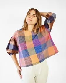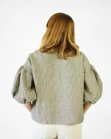 The Perfect Puff Sleeve Top is designed to have a relaxed and roomy A-line silhouette with a touch of shaping for a flattering fit. This easy to sew pattern includes two views, both feature a wide style neckline and dropped shoulders with a perfectly dramatic puff sleeve that hits just below the elbow. The length sits just below the natural waist giving the option for a tucked or untucked look. View B has a front button placket for elevated styling.