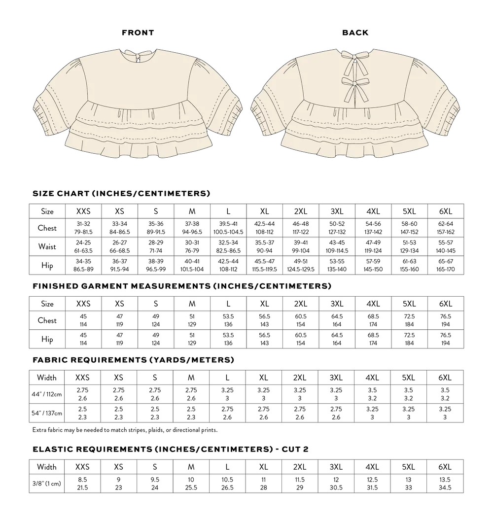 Pattern includes sizes XXS - 6XL (31” - 64” / 79cm - 162cm)