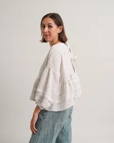 The Pintuck Poet Blouse is a romantic, floaty top with plenty of volume to add a touch of drama and a whole lot of charm. Designed with a soft, boxy silhouette and a gathered peplum hem, it’s both relaxed and thoughtfully detailed. The wide set neckline is gently rounded, while the back is finished with two sweet bows that double as functional closures—making the back view just as special as the front.