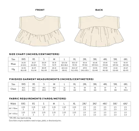 The Wave Float Top is a fun and playful easy to wear top with beginner sewists in mind. The top is designed to have a wide oversized fit with a dropped peplum in the front and a high peplum in the back. This style is intended to be cropped offering a lovely swingy silhouette and pairs perfectly with high waisted pants. The Wave Float Top pattern is a wonderful choice for beginners to practice basic sewing techniques.