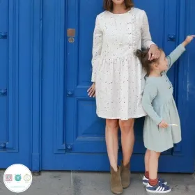 Elena is an quasi unlimited pattern : a dress with 2 lengths and pockets, a top, with or without ruffle, a yoke on the sleeves.