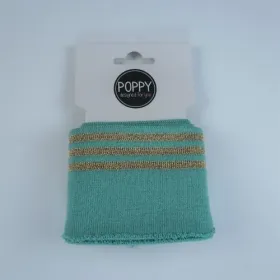 Premade Cuffing Fabric - Mint with Gold Lurex Stripes