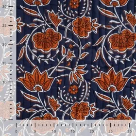 Quilted Cotton Fabric Double Sided with Floral Print on Navy Blue