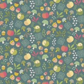 Quilting Fabric - Apples and Acorns on Teal Green from Autumn Smiles by Sunny Spot Studio for Quilting Treasures 31058 Q