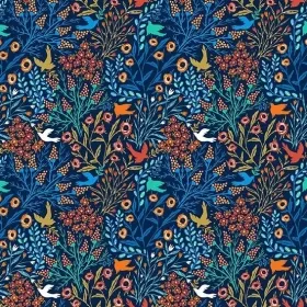 Quilting Fabric - Birds and Floral Branches on Navy Blue from Whimsy by Jason Yenter for In The Beginning 9WMS-1