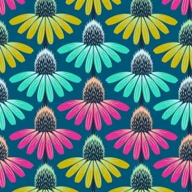 Quilting Fabric - Echinacea on Teal Blue from Perennial Borders by Anna Maria Textiles AMT136-86C