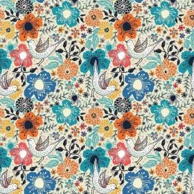 Quilting Fabric - Floral with Birds on Off White from Whimsy by Jason Yenter for In The Beginning 2WMS-1