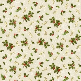 Quilting Fabric - Holly Sprigs on Cream from Poinsettia Greetings by Tina Higgins for Quilting Treasures 31084 E