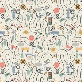 Quilting Fabric - Road Map on Cream from Driveway Days by Stacy Ward for Paintbrush Studios 12024666