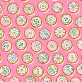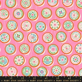 Quilting Fabric - Spool Tops on Pink from Trinketry by Melody Miller for Ruby Star Society RS0111 17