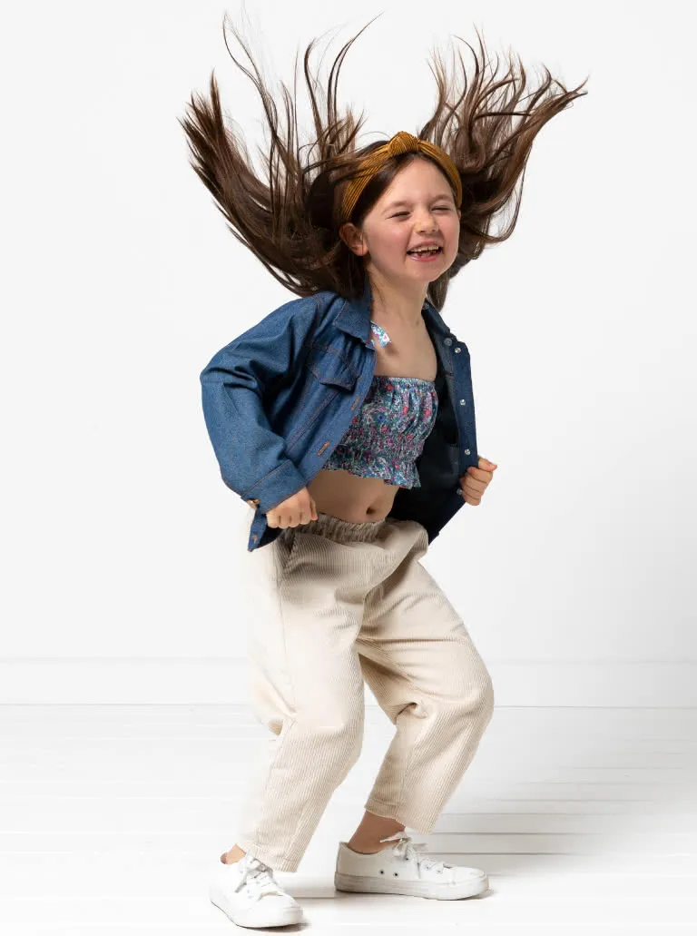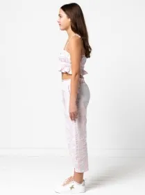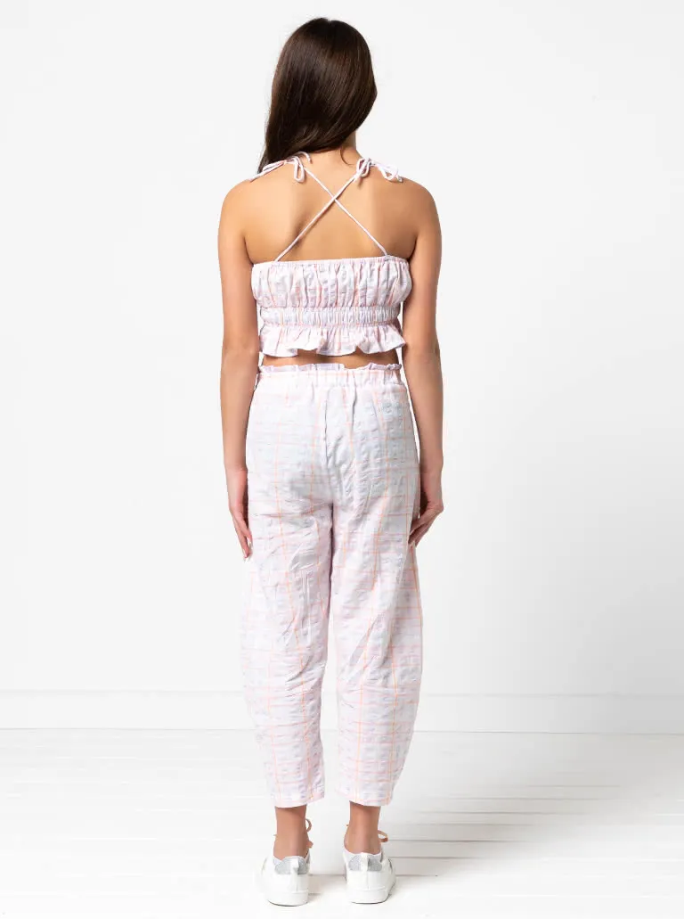 Crop top with shirring and rouleau straps & Elastic waist, pull-on, balloon shape pant with pockets, for kids 02-16