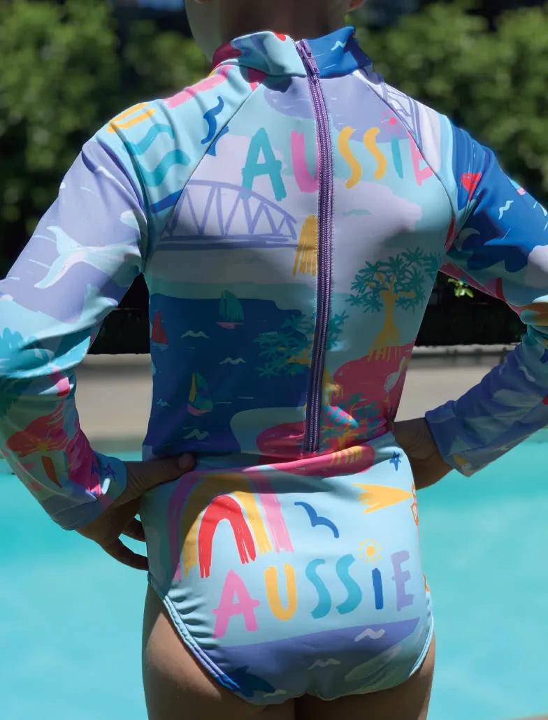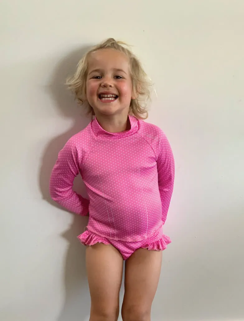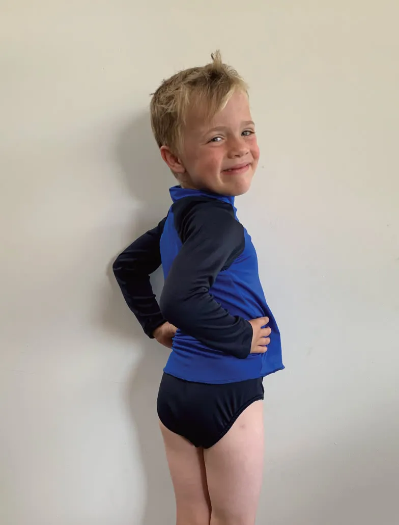 Sun-smart swimsuit sewing pattern for boys and girls. Three styles included.