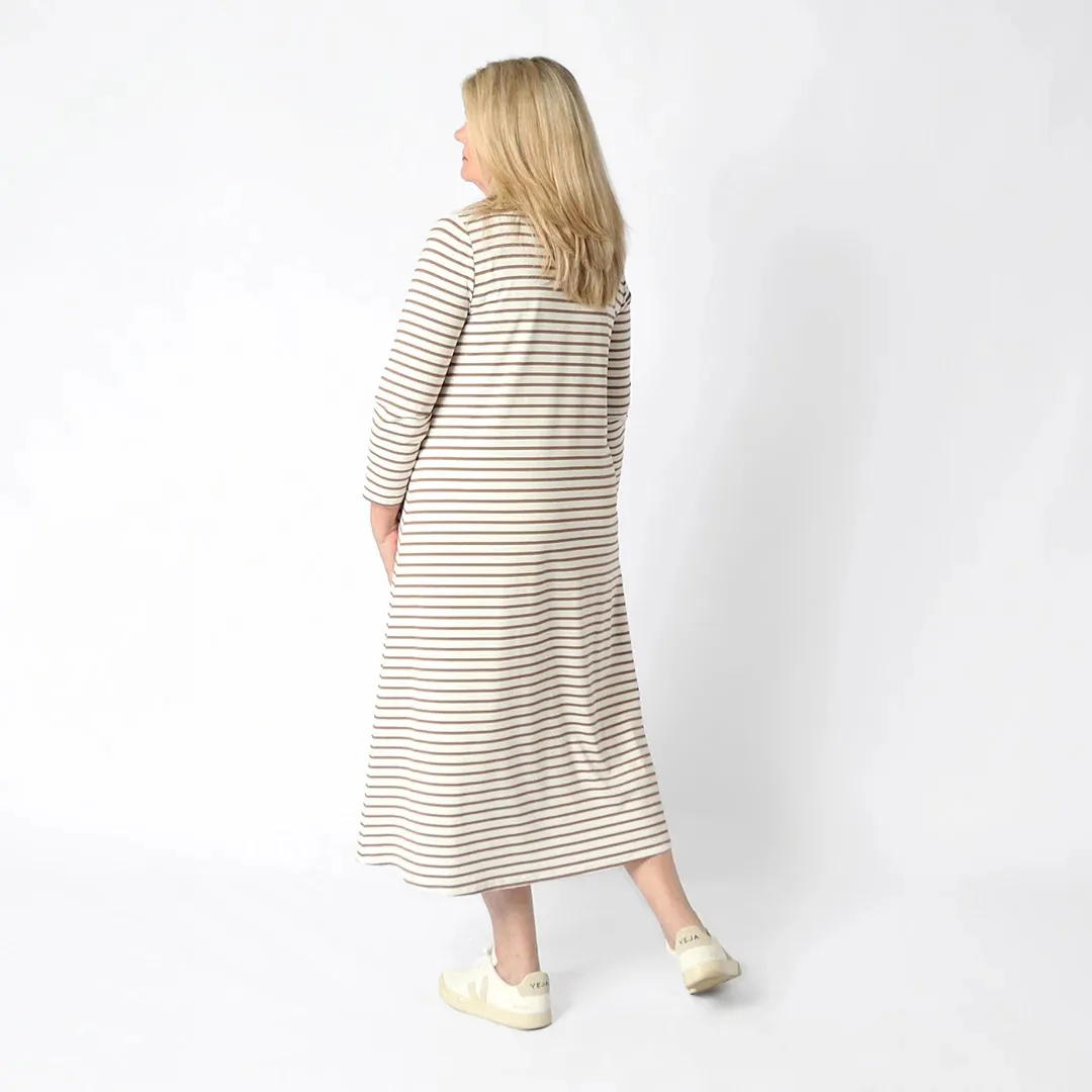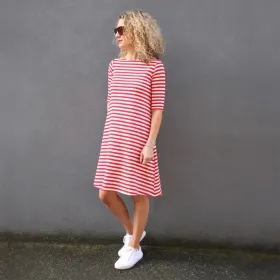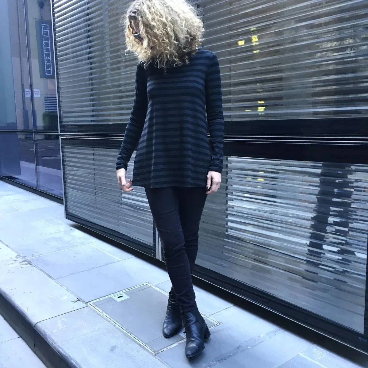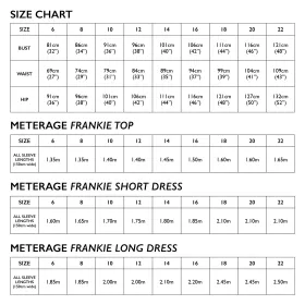 The Frankie Top/Dress is the perfect jersey knit style and a fabulous wardrobe winner across all the seasons.The pattern features a boat neckline, flared hemline, set in sleeves and comes with numerous style options - two dress lengths, a top and three sleeve lengths (elbow, three quarter and full). The stitched down, back facing creates a neat and secure neckline.