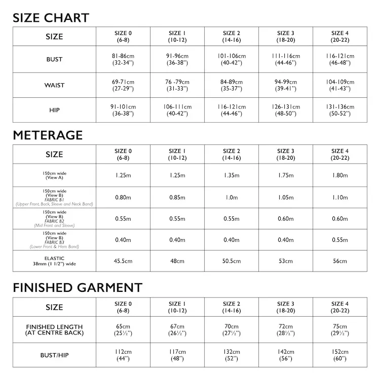 Notions: thread, 2.5mm stretch twin needle, 38mm (1 1/2") wide elastic (for sleeves with elasticized cuffs View B only)