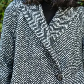 The Oslo Coat is a fully lined, double-breasted style with a shawl collar, full length raglan sleeves and side pockets. This classic style has a straight fit and sits on or just above the knee