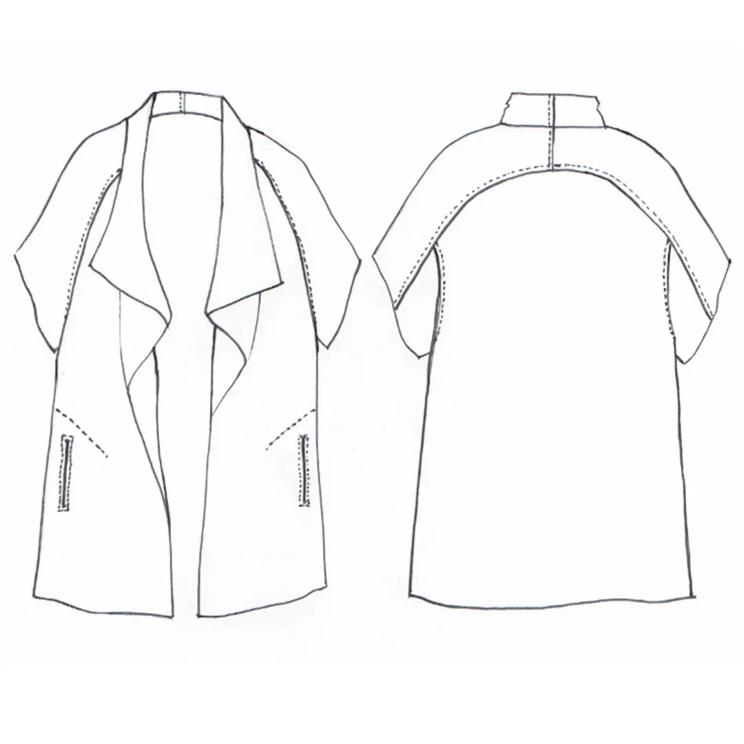 The Sydney Jacket pattern is an oversized, draped style featuring a relaxed collar, back yoke, extended cropped raglan sleeves and side pockets. Perfect for layering over garments, it’s the perfect cover-up for the autumn/winter months