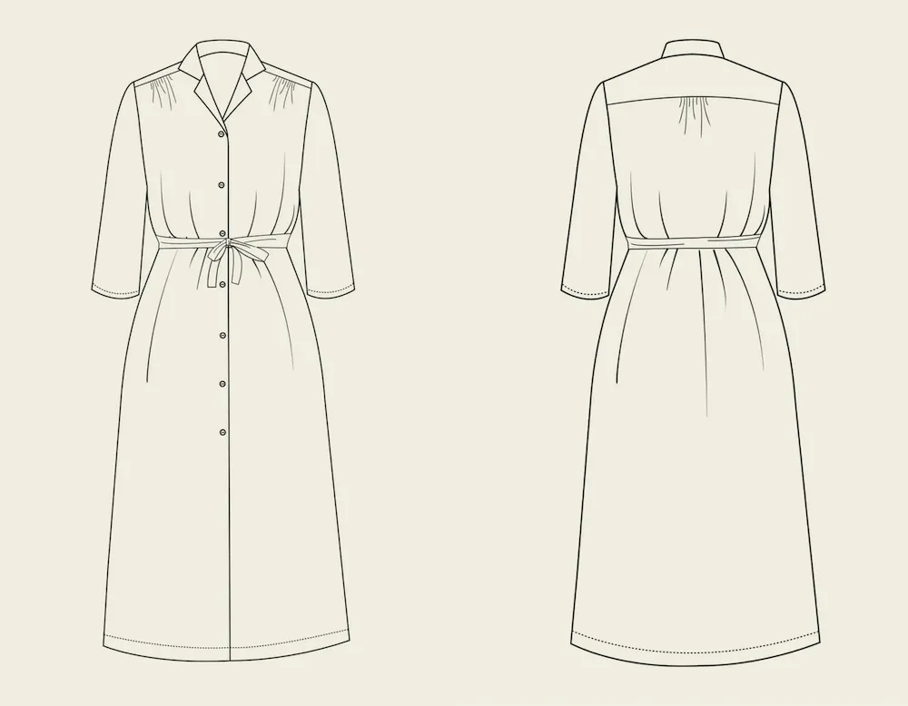 The Celia Dress is a timeless design with hints of tailoring and an easy going feel. You'll have a huge amount of flexibility with fabric choice for this dress depending on the intended feel. You could opt for silk for a smart occasion, denim for a cool and casual feel or even a light wool weave for cosy winter wearing.
