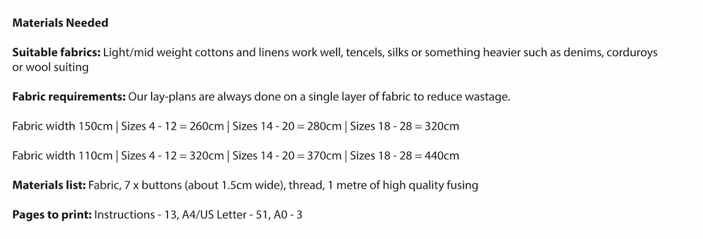 If you order the Digital Pattern + A0 Printing, your PDF digital file will be available to download immediately and the A0 pattern sheets will be sent out on the next working day. Please note that we print out the A0 pattern sheets, but you will need to download the digital instructions, as we don’t print these.