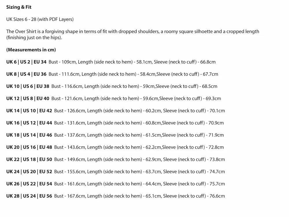 The Over Shirt is a classic worker wear jacket and an incredibly useful wardrobe layer. It features our favourite shirt making techniques and the possibilities for adding your own personal twist are endless (we've seen patchwork jackets, short sleeve hacks, long versions and many pocket variations). We think it's one of the most satisfying pieces to make in our range and you'll be using some really nice sewing techniques.