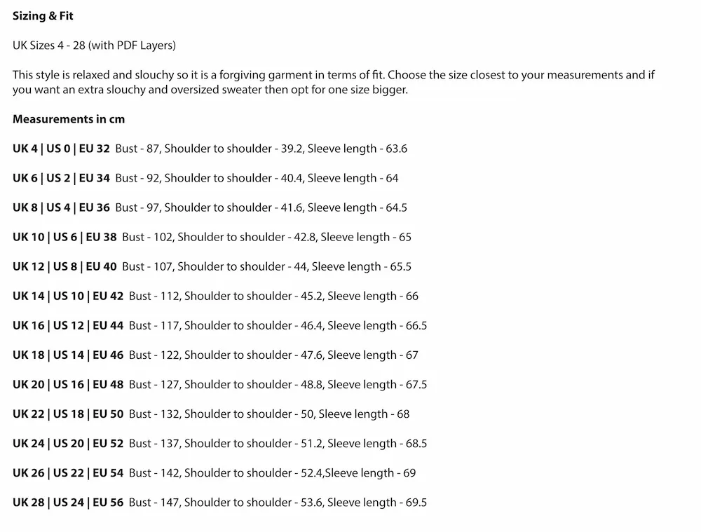 If you order the Digital Pattern + A0 Printing, your PDF digital file will be available to download immediately and the A0 pattern sheets will be sent out on the next working day. Please note that we print out the A0 pattern sheets, but you will need to download the digital instructions, as we don’t print these.