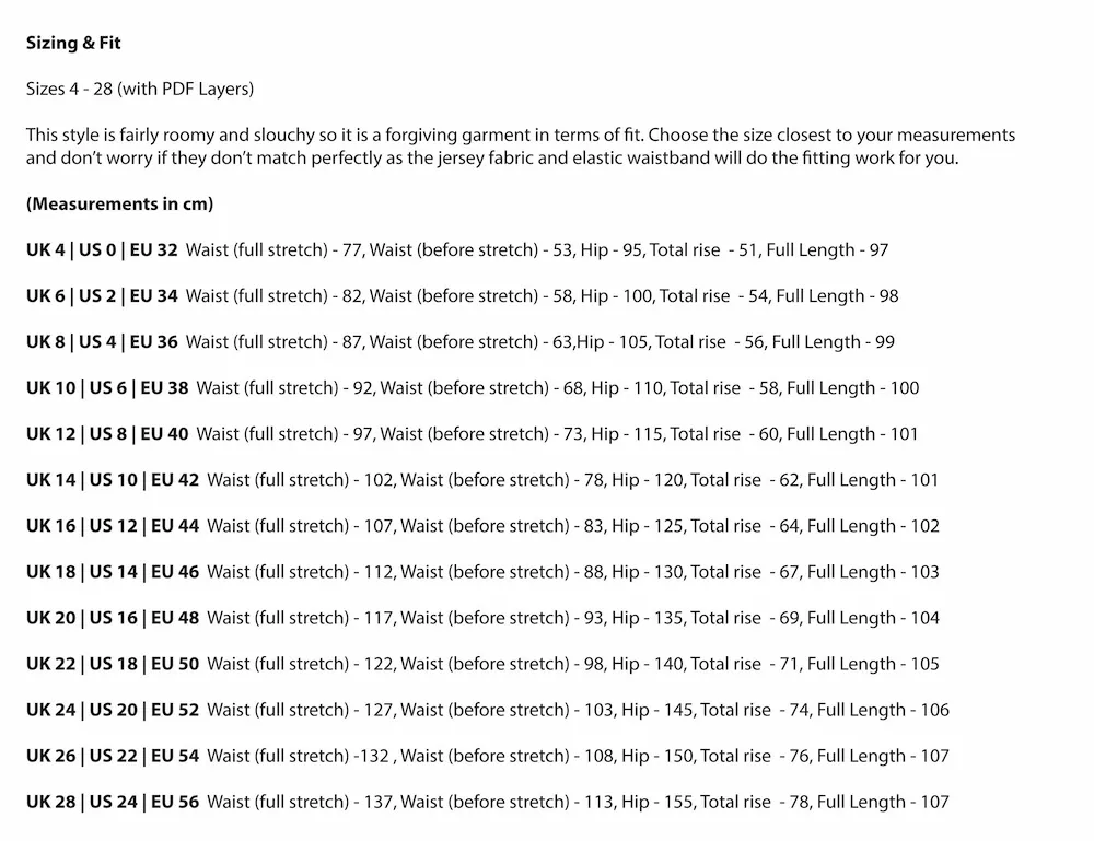 Sizes 4 - 28 (with PDF Layers)