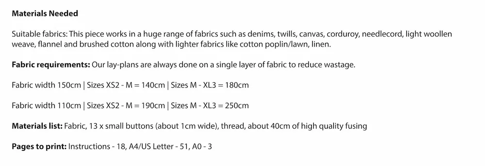 If you order the Digital Pattern + A0 Printing, your PDF digital file will be available to download immediately and the A0 pattern sheets will be sent out on the next working day. Please note that we print out the A0 pattern sheets, but you will need to download the digital instructions, as we don’t print these.