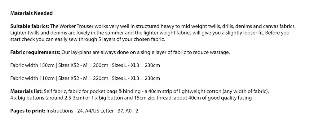 If you order the Digital Pattern + A0 Printing, your PDF digital file will be available to download immediately and the A0 pattern sheets will be sent out on the next working day. Please note that we print out the A0 pattern sheets, but you will need to download the digital instructions, as we don’t print these.