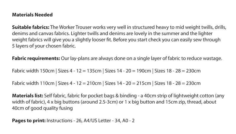 Our Worker Trousers are the ultimate everyday trouser and our best selling pattern. They are supremely practical with hundreds of you saying they're your comfiest trousers yet. Designed to stand the test of time, you'll be using high end finishing techniques to create a really long lasting pair of trousers.