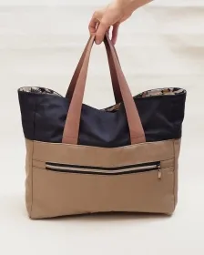 A comprehensive two-tone bag design that features all of the details necessary to make a high-end finished product. This handsomely proportioned tote is wide enough to carry a laptop, deep enough to function as a diaper bag, and sturdy enough to stand up to the wear and tear of everyday use. There are three variations included: The Laptop Bag (featuring a padded interior sleeve), The Carry-all (replacing the sleeve with two elasticated pockets), and the Simple Tote (which utilizes webbing as straps and forgoes most inner and outer pockets). Details from all variations can be mix and matched to create the ideal custom bag.