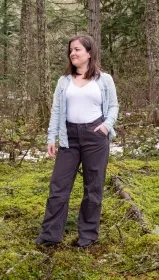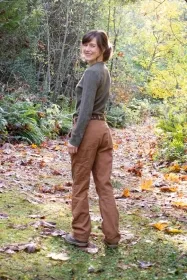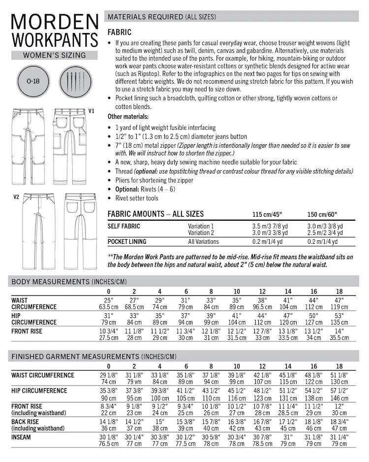 The instructions include many tips on fitting and working with heavy weight materials. Choose between a workwear version with double topstitching and details designed for heavy wear, or a stripped down version that would make excellent activewear trousers in lighter materials.