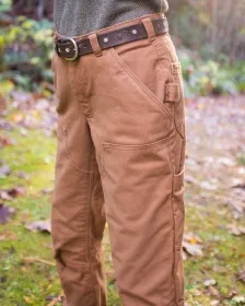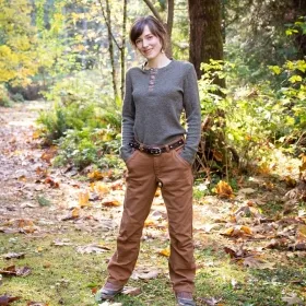 These work pants are designed for comfort and true function. The roomy legs, knee darts, close-fitting gusset, and a raised center back allow for an extreme range of movement. They can be sewn with a myriad of useful pockets and also include the option to add a hammer loop, reinforced knees, and a reinforced hem.