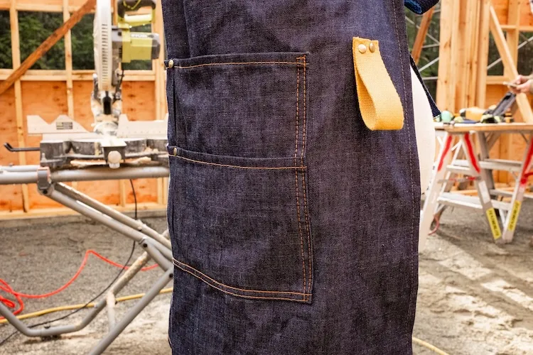 An essential workwear accessory for the workshop or kitchen. Make this practical apron in heavy canvas, rugged denim or sturdy linen with coordinating webbing and sturdy rivets for long lasting protection.