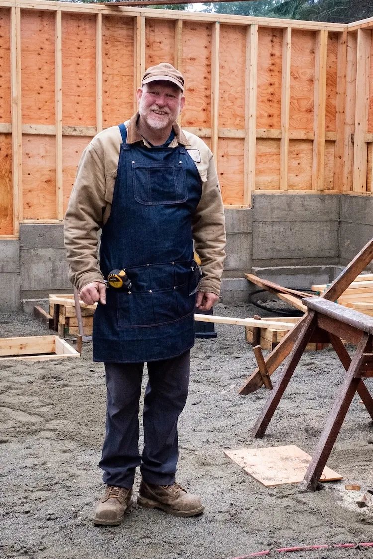 This pattern features a chest pocket for pens and small tools (and inner zipped pocket to secure your phone) along with three hip pocket designs. Variation 1 includes three layers of divided pockets reinforced with rivets and an extra ergonomic hip pocket perfect for tools that need to be reached quickly. Variation 2 includes a clever 'kangaroo' pouch with two deep angled pockets and two shallower pockets. Variation 3's divided pleated pockets are ideal for carrying many small things (nails, screws, a phone) in an organized manner.