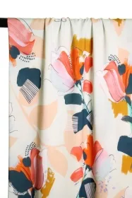 Mint green viscose with a flower print of painted strokes, dots and lines. This fabric is perfect for blouses, dresses, skirts...
